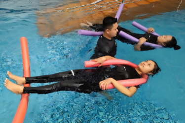 - Hanya dengan merendam tubuh hingga sebatas pusar, beban yang ditopang dapat berkurang hingga 50%.