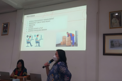 Sebagai bagian upaya mewujudkan hidup sehat tanpa nyeri, Tim Medis RS Brayat Minulya mengajak peserta Rapat Kepala Sekolah Yayasan Kanisius Cabang Surakarta melakukan latihan gerakan duduk yang benar saat bekerja, duduk saat posisi bekerja didepan meja komputer, melakukan gerakan peregangan otot ketika duduk dalam waktu yang cukup lama serta mengambil benda atau memindah benda dengan menjaga otot-otot punggung.